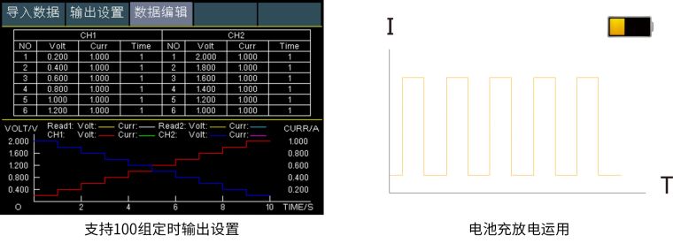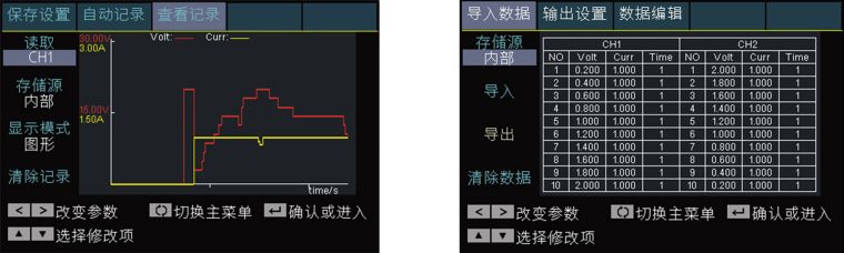 + 记录仪功能:可对输出电压、电流情况进行记录,并以图形显示